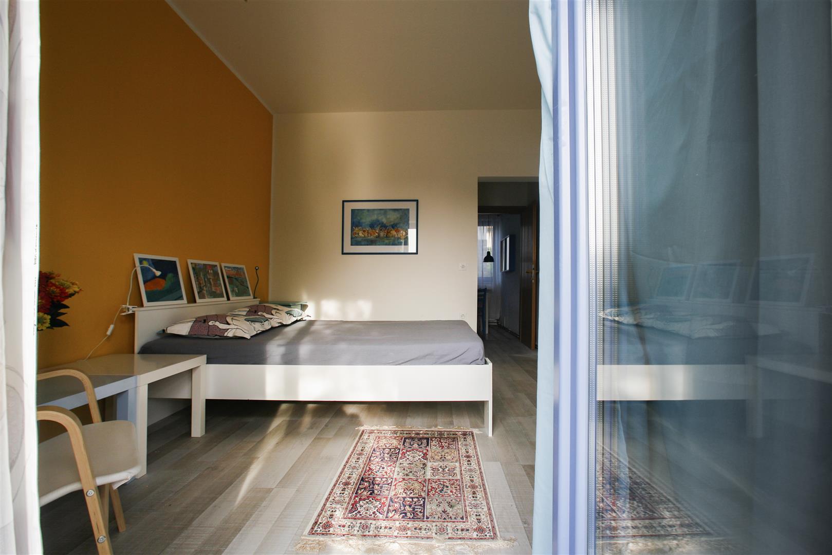 Apartmaja sta za 2 osebi (možnost dodatnega ležišča), moderno opremljeni s pridihom likovnih ustvarjalcev in obsegajo : bivalno kuhinjo, spalnico s teraso in kopalnico s tušem, z lastnim ločenim vhodom, shrambo za kolesa (45m2).